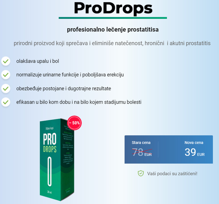 Jasno je da se prostatitis ne može ne liječiti. Ali muškarci ne vole ići liječnicima, radije traže lijekove na internetu. Ali ako se stvarno bavite samo-liječenjem, onda to trebate učiniti uz pomoć lijeka ProDrops, koji je stvoren na bazi prirodnih sastojaka. U suprotnom, možete dobiti više bolesti zbog nuspojava brojnih lijekova. No, vratimo se našem lijeku: je li moguće kupiti kapi za prostatitis ProDrops u ljekarni? Je li ovaj lijek skup? Šta je to i kako funkcionira? Koje su prednosti proizvoda u odnosu na njegove kolege na Kosovo? Tome je posvećena naša recenzija.